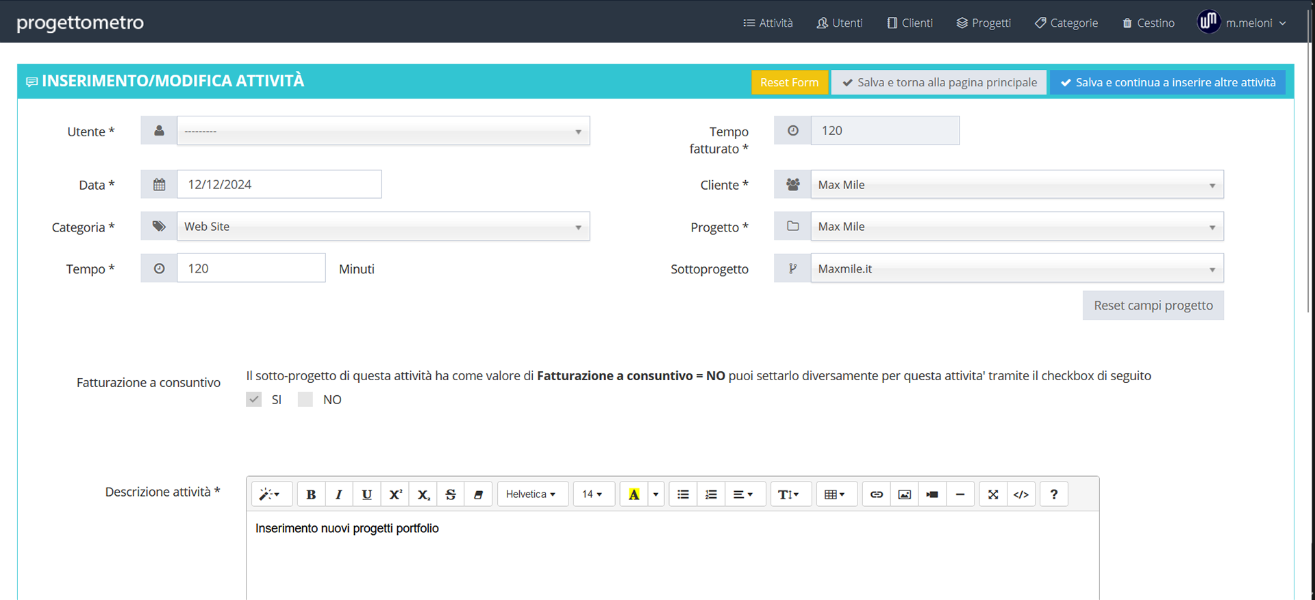 Possibilità di inserire in autonomia le attività svolte: